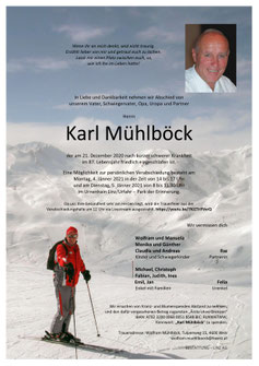 tieftraurig müssen wir die Nachricht überbringen, dass Karl Mühlböck, einer der Instruktoren der ersten Stunde, und bis zuletzt in unserem Verein aktiv, am 21.12.2020 verstorben ist.