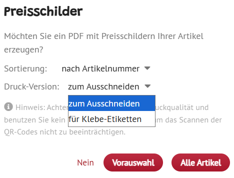 Klebe-etiketten und die Artikelliste für dich aus. Bitte plane hierfür mehr Zeit ein.